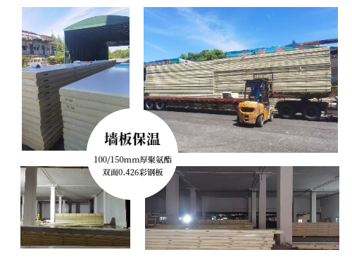 庫體墻板采用100mm(冷藏)/150mm(冷凍)聚氨酯雙面0.426彩鋼板;庫體頂面采用聚氨酯噴涂100mm(冷藏)/150mm(冷凍)厚,B1級(jí)阻燃,表面噴涂防火涂料;地面采用150mm厚擠塑板保溫。具有良好的保溫性能和防火性能,符合國家消防標(biāo)準(zhǔn)要求。